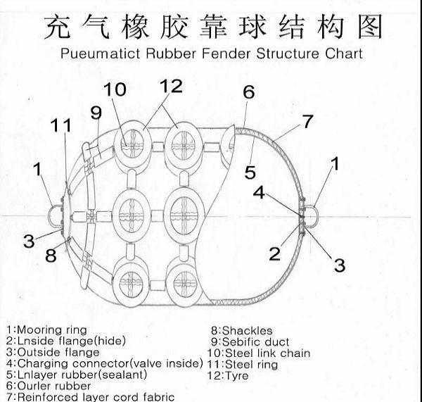 青島新城充氣橡膠靠球是采用掛膠簾子布作骨架材料制作而成的橡膠密閉容器,靠球內(nèi)充滿壓縮空氣后可浮于水面,以做為船與船靠泊STS (ship and ship)和船與碼頭靠泊STD(ship and dock)的重要緩沖介質(zhì).同時充氣橡膠靠球可吸收船舶運動的沖擊能量,減小船舶的反沖力,提高船舶停泊的安全性.