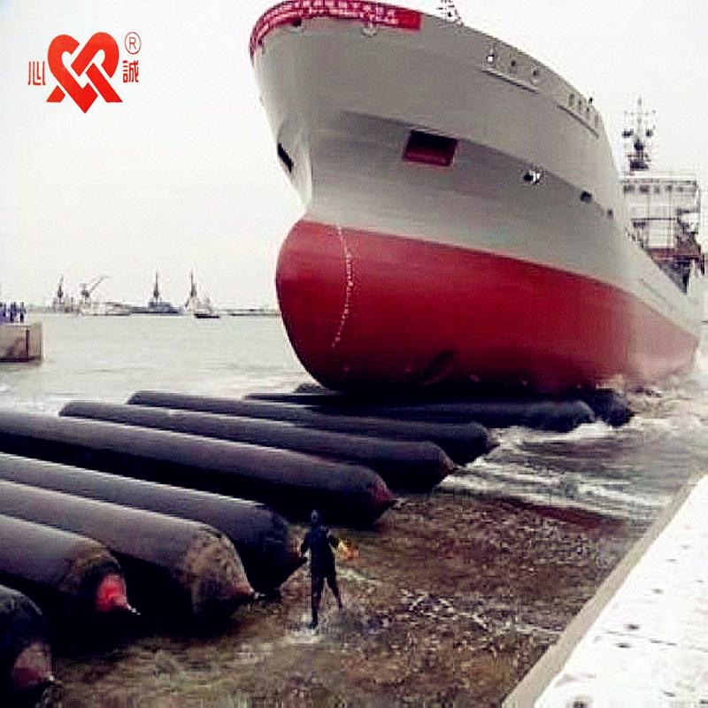 實踐證明,隨著高強度起重載動氣囊的應(yīng)用以及新型氣囊問世,船臺和下水坡道的設(shè)計成功,5萬噸級以上船舶用氣囊下水是完全可行的,但必須采取相關(guān)的安全保障措施:應(yīng)該精心設(shè)計船舶氣囊下水的船臺和折角型下水坡道;根據(jù)船舶重量,重心位置,船底線型,下水坡道坡度,水位高低等等進行氣囊下水計算;對每只氣囊在滾動的每一個行程,尤其是在船舶產(chǎn)生艉落和艉上浮時的內(nèi)壓和內(nèi)應(yīng)力應(yīng)有計算依據(jù).船用氣囊的生產(chǎn)和應(yīng)用主要參照兩個行業(yè)標準來執(zhí)行:CB/T3795《船舶上排,下水用氣囊》,CB/T3837《船舶用氣囊上排,下水工藝要求》.